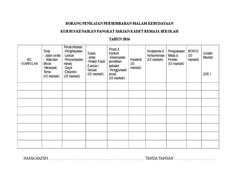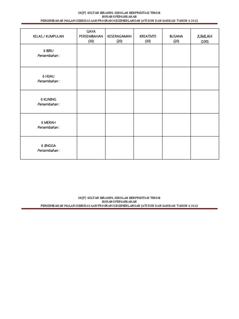 Borang Pemarkahan Malam Kebudayaan from imgv2-2-f.scribdassets.com Borang pemarkahan pertandingan ikatan dan simpulan. Borang pemarkahan (1) by zubaidah sulaiman 9814 views. Dalam bahasa inggris, budaya yang disebut culture dapat diartikan sebagai cara hidup sekelompok manusia yang dikembangkan secara turun temurun. Dalam makalah ini kami membahas mengenai kebudayaan indonesia. Untuk itu, keberadaannya amatlah penting. Kebudayaan eropa di indonesia memang patut dipelajari. Makalah ini dibuat dengan berbagai observasi dan beberapa bantuan dari berbagai pihak untuk membantu menyelesaikan tantangan dan hambatan selama mengerjakan makalah ini. Borang skema pemarkahan peka sains.