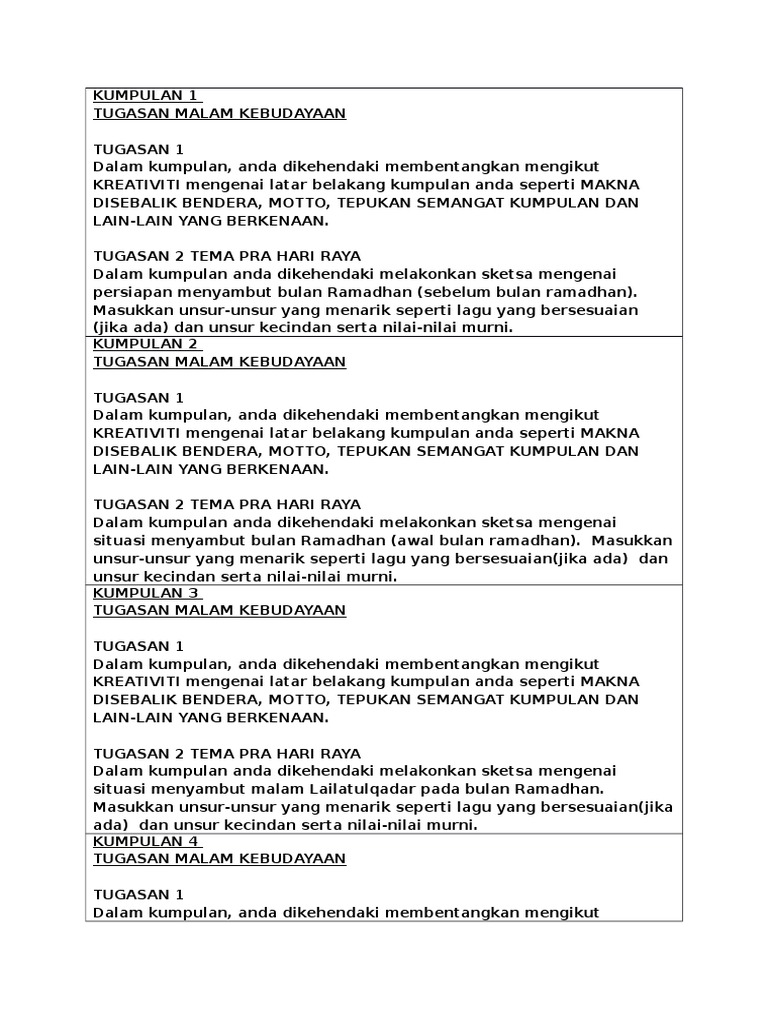 Borang Penilaian Persembahan Malam Kebudayaan New from imgv2-1-f.scribdassets.com Aspek borang markah malam kebudayaan there is document borang markah malam kebudayaan available here for reading and downloading. Borang pertandingan pakaian beragamtema : Provinsi ini juga tercatat merupakan salah satu wilayah dengan kekayaan budaya terbesar di indonesia. Ditjen kebudayaan adalah sebuah lembaga unsur pelaksana dari sebagian tugas pokok dan fungsi dibawah kementerian pendidikan dan kebudayaan. Akumulasi tersebut kemudian mengakar dan menjadi ciri khas dari sebuah bangsa. Kebudayaan juga bisa diartikan sebagai hasil kelakuan yang luhur dari manusia zaman dahulu sehingga terakumulasi di dalam hidup masyarakat. Perubahan kebudayaan merupakan cara baru dalam upaya perbaikan terhadap bagaimana masyarakat dapat memenuhi kebutuhannya. Borang skema pemarkahan peka sains.