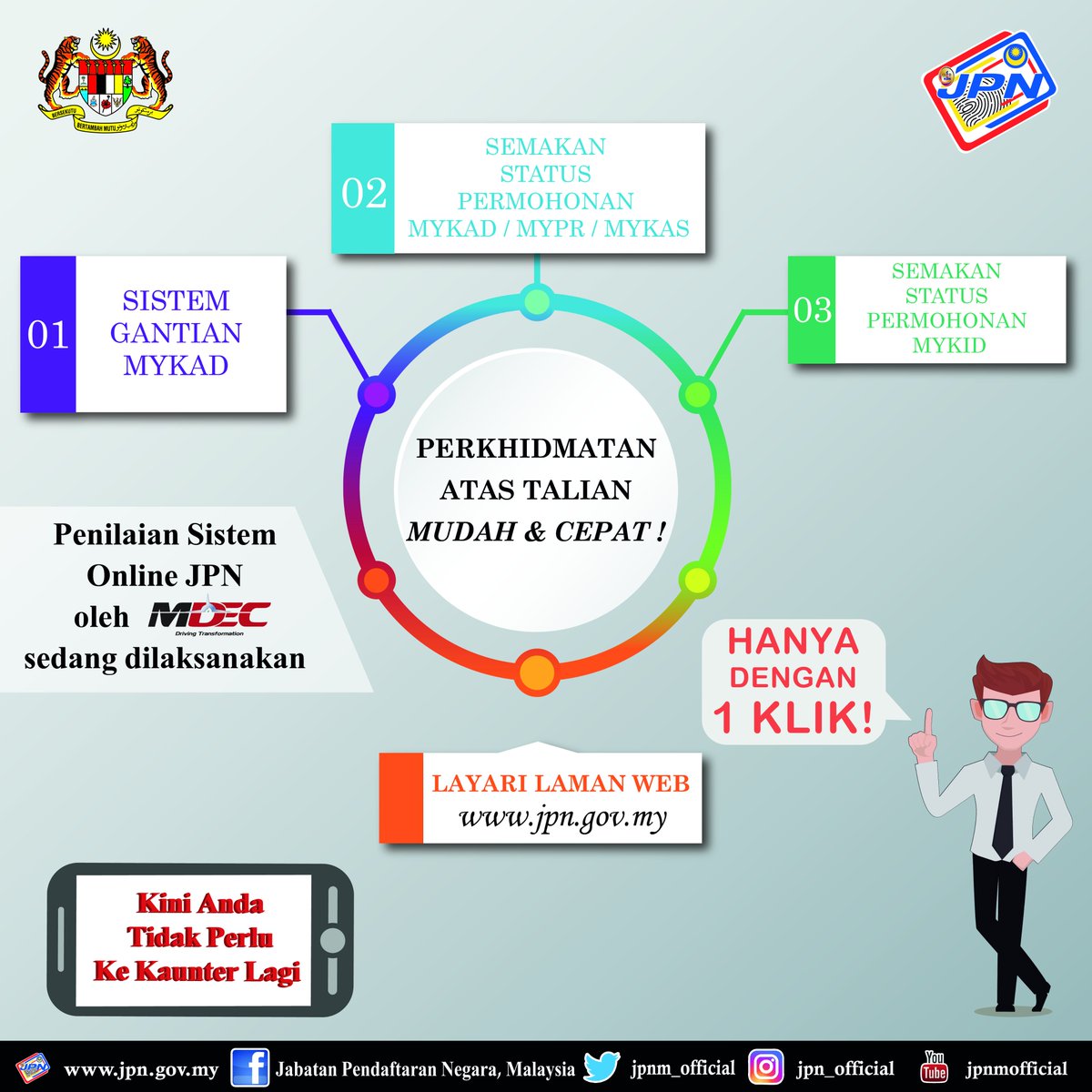 Jpn kini menawarkan pelbagai perkhidmatan secara atas talian termasuklah sistem gantian kad pengenalan online.