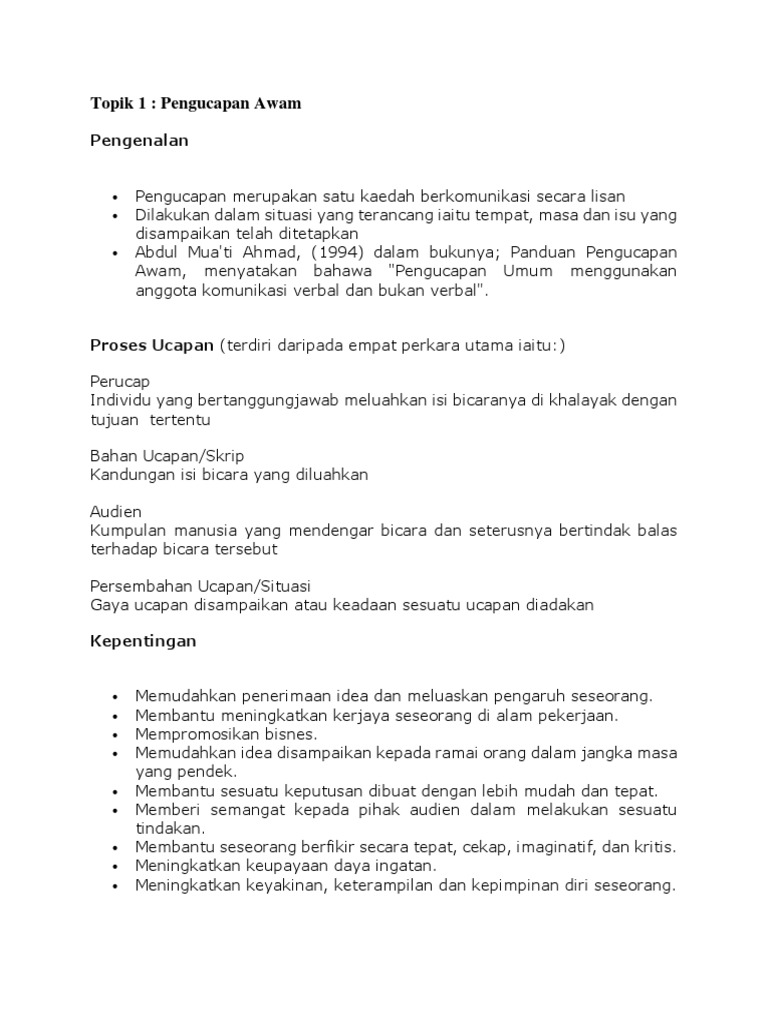 Doc Pengucapan Awam Mohd Rahmat Academia Edu from 0.academia-photos.com Membuat pengucapan awam semasa induksi umum penjawat awam di institut tadbiran awam (intan tengah). dilakukan dalam bentuk yang formal. Pengucapan awam free pdf books. Penceramah haruslah bersikap jujur dan ikhlas terhadap ilmu yang disampaikan. Pengetahuan am/isu semasa memperkasakan pdrm dalam memelihara keselamatan serta mengekalkan keamanan, polis diraja malaysia (pdrm) memberi tumpuan untuk memperkasakan sumber manusia serta menghalakan gerak kerja dan inisiatif berpandukan 3 fokus utama iaitu: Tujuan ucapan adalah untuk memberi maklumat kepada pendengar mengenai sesuatu perkara dan isu serta juga boleh dilakukan secara syarahan umum. Pernahkah anda mendengar, kerana seekor kucing, tercampak ke dalam neraka? Awani pagi membawakan kemaskini terkini mengenai berita dalam dan luar negara yang dilaporkan di www.astroawani.com bersama geegee ahmad dan hakim rahman.